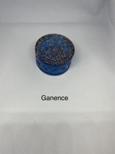 boîte signes du zodiaque et couvercle pentacle. En résine couleur bleue et paillettes dorées.